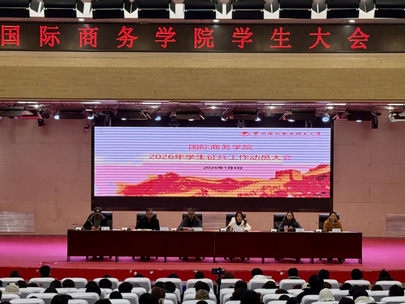 为总结学期工作、表彰先进典型、部署假期安排,国际商务学院于2026年1月4日在新区校区报告厅召开2025-2026年度第一学期学生大会暨表彰会议。会议采用线上线下融合方式举行,学院科级以上干部、党支部及团总支负责人、全体辅导员与在校学生参会,由学院党委副书记主持。